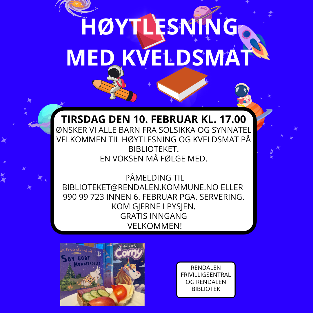 Kontakt oss gjerne på tlf: 474 84 039 biblioteket@rendalen.kommune.no